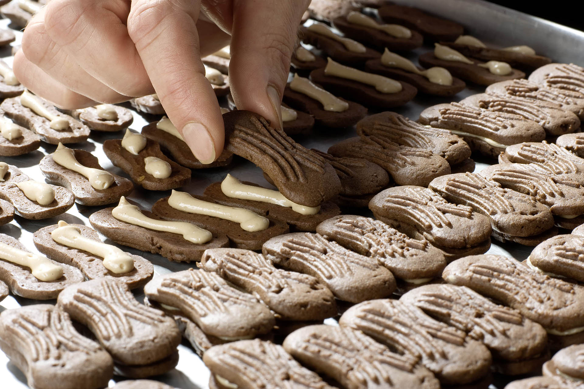 Ebenso wie unsere cremige Trüffel-Ganache, wird auch Edelmarzipan, hergestellt aus ausgesuchten Mittelmeermandeln und sehr geringem Zuckeranteil und edler Nougat aus besten Haselnüssen oder Mandeln von hochwertiger Kuvertüre umhüllt. Jedes einzelne Meisterwerk wird anschließend von Hand verziert. Unsere Feingebäcke bestehen aus einer sorgfältig zusammengestellten Mischung erlesener Zutaten. Ausgestochen oder geschnitten, von Hand belegt oder verziert entstehen meisterliche Genussstücke für anspruchsvolle Genießer.